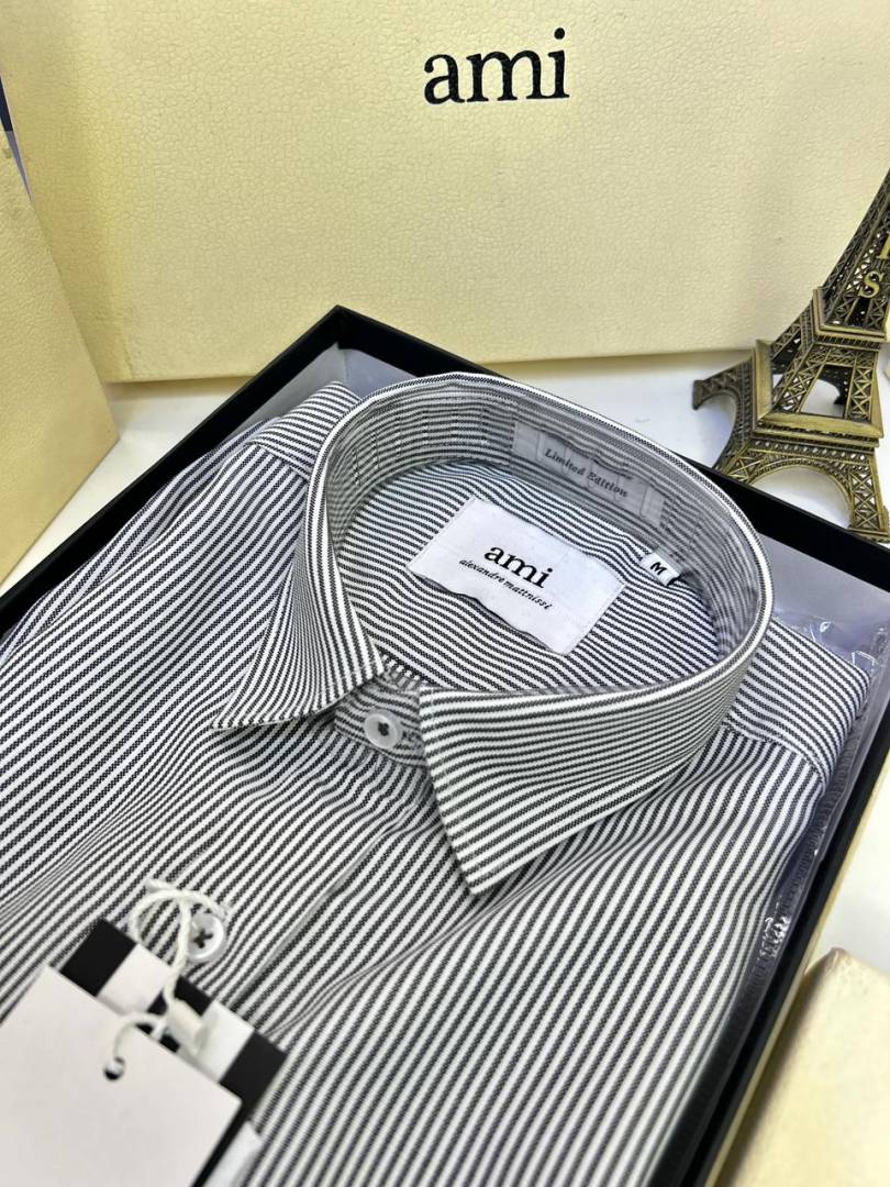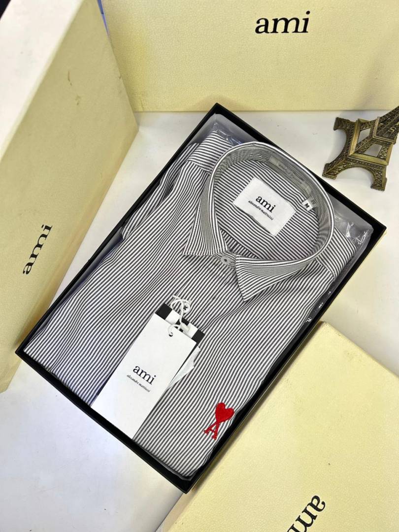 Ami Logo White Premium Lining Shirt With Brand Box Packing F3244-WH