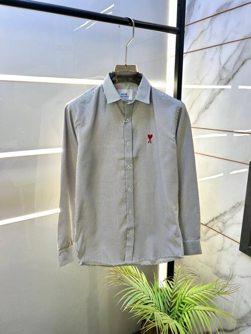 Ami Logo Beige Premium Lining Shirt With Brand Box Packing F3244-BE