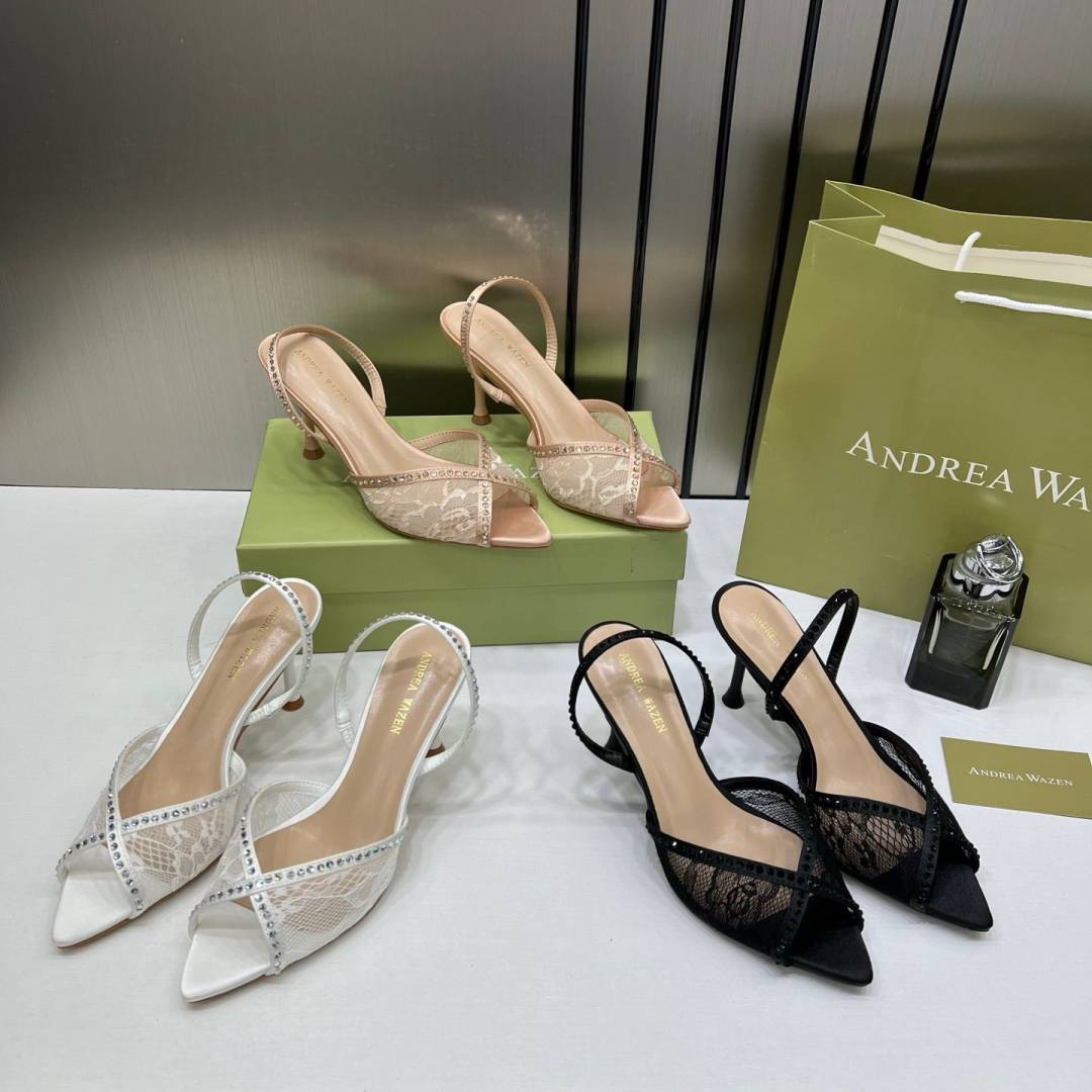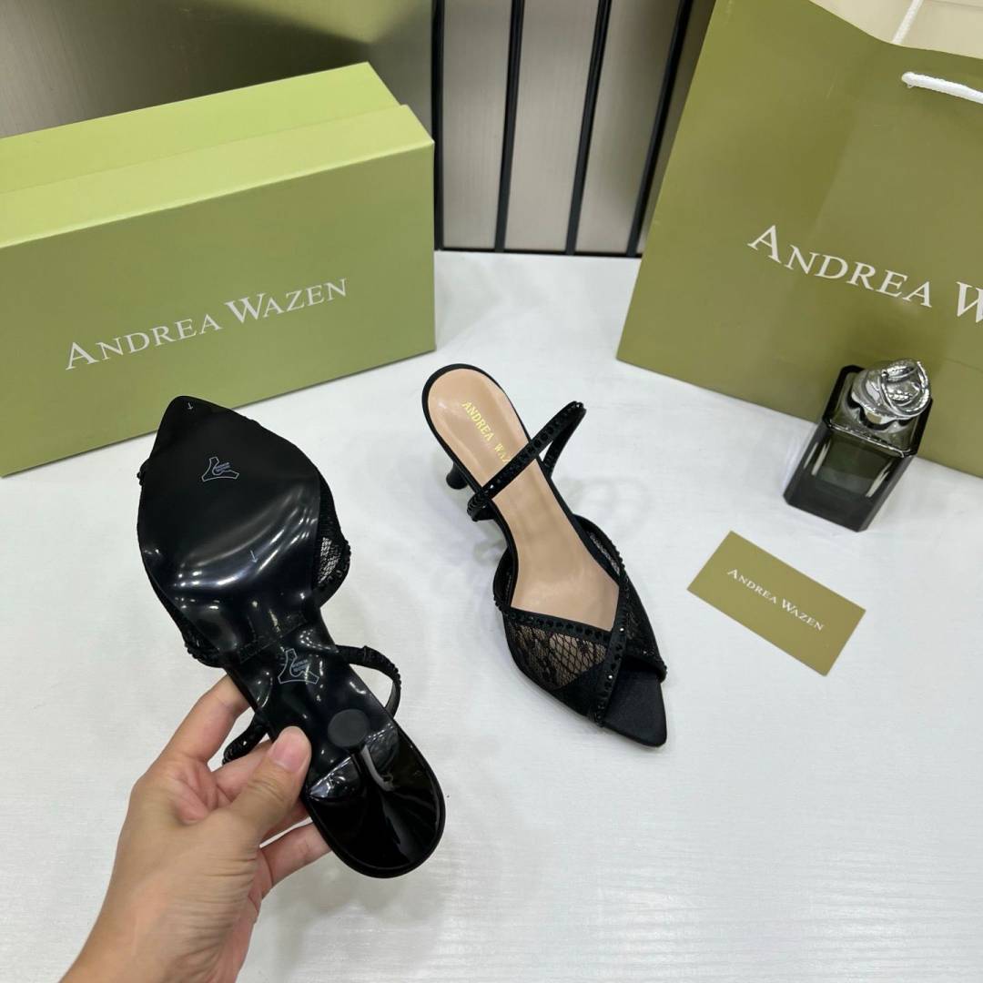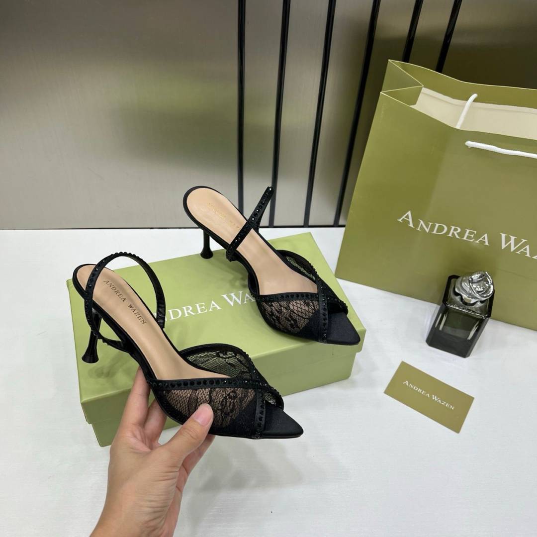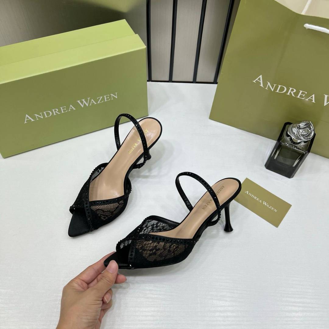 • Andrea Wazen Apricot Katy 105 Slingback Pumps black Satin Mesh Rhinestone With OG Box & Carry Bag