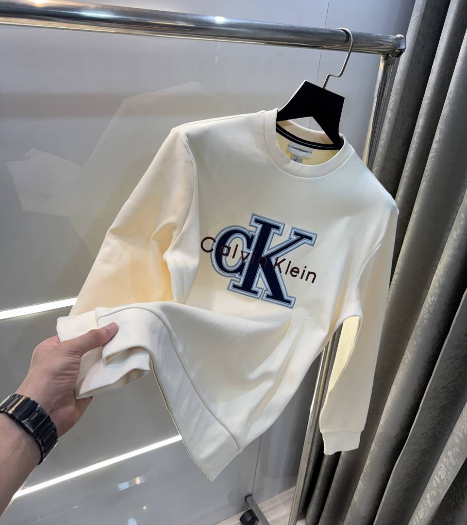 • Calvin Klein Cream Logo Work Premium Sweatshirt