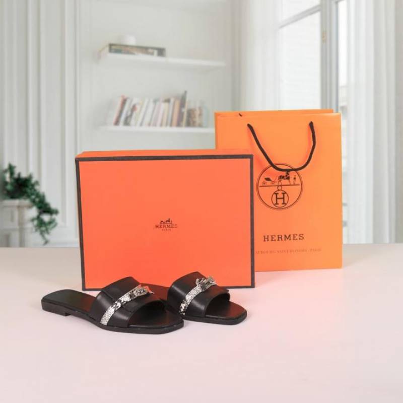 Hermes Paris Birkin Premium Flats With OG Box & Carry Bag (Black - 889)