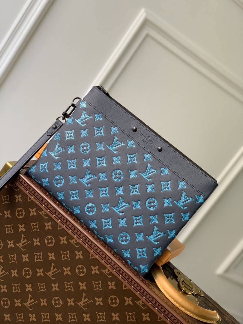 Louis_Vuitton_Pochette_To-Go_Monogram_Leather_Embossed_Blue_Clutch_Bags_Blue_Flower_82321_With_OG_Box_&_Dust_Bag_Carry_Bag