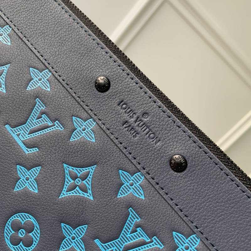 • Louis_Vuitton_Pochette_To-Go_Monogram_Leather_Embossed_Blue_Clutch_Bags_Blue_Flower_82321_With_OG_Box_&_Dust_Bag_Carry_Bag