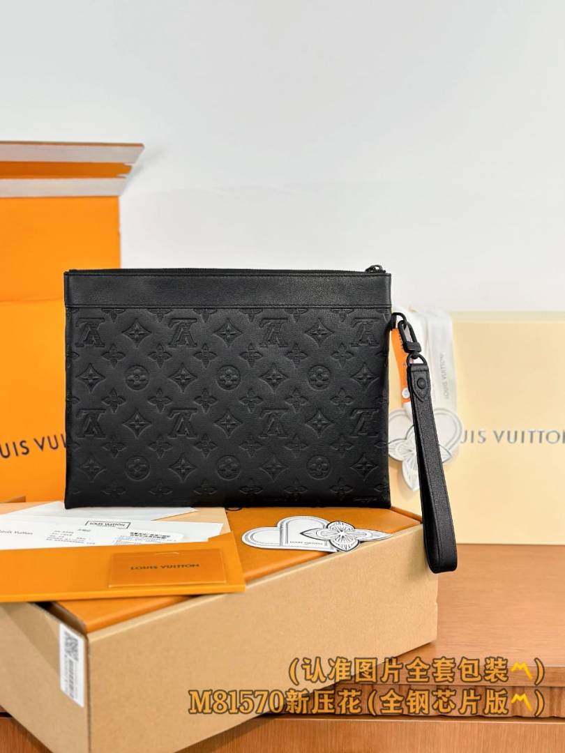 Louis_Vuitton_Pochette_To-Go_Monogram_Leather_Grey_Clutch_Bags_Black_81570_With_OG_Box_&_Dust_Bag
