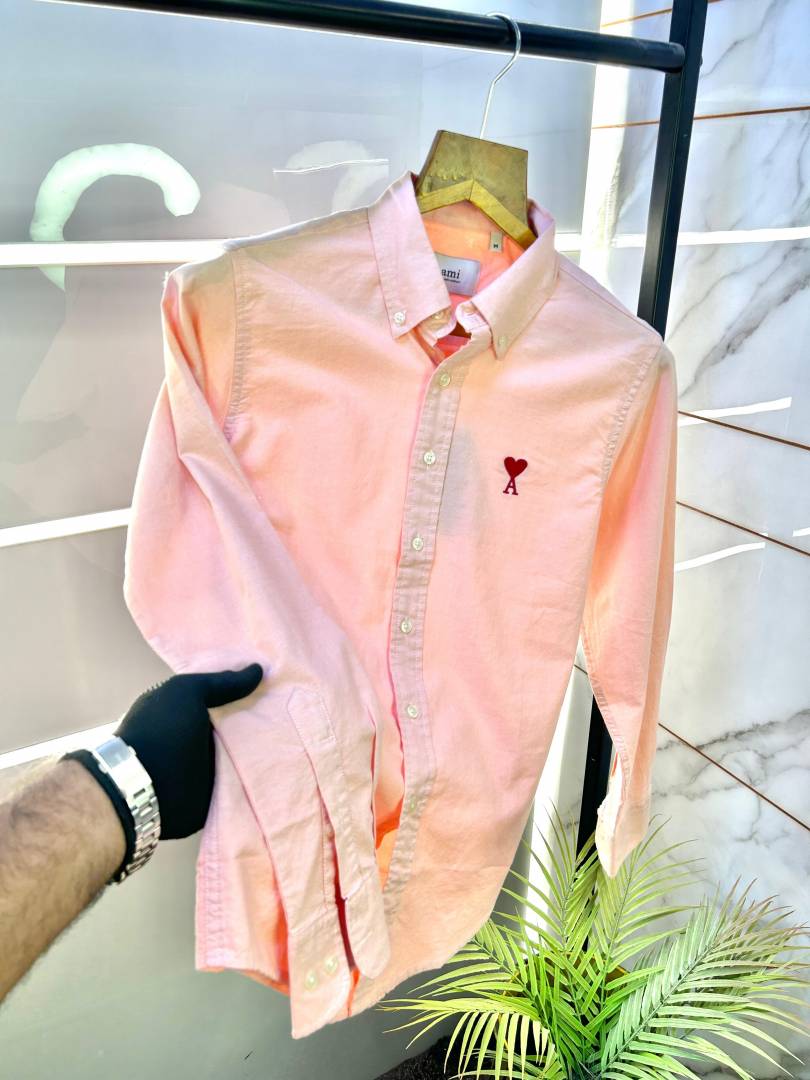 Sale Ami Pink Embroidery Logo Oxford Lycra Premium Shirt F2770-P2