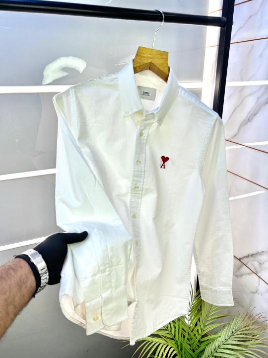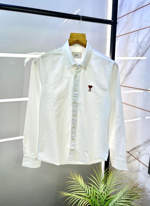Sale Ami White Embroidery Logo Oxford Lycra Premium Shirt F2770-WH
