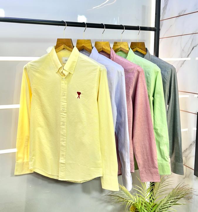 Sale Ami Pink Embroidery Logo Oxford Lycra Premium Shirt F2770-P2