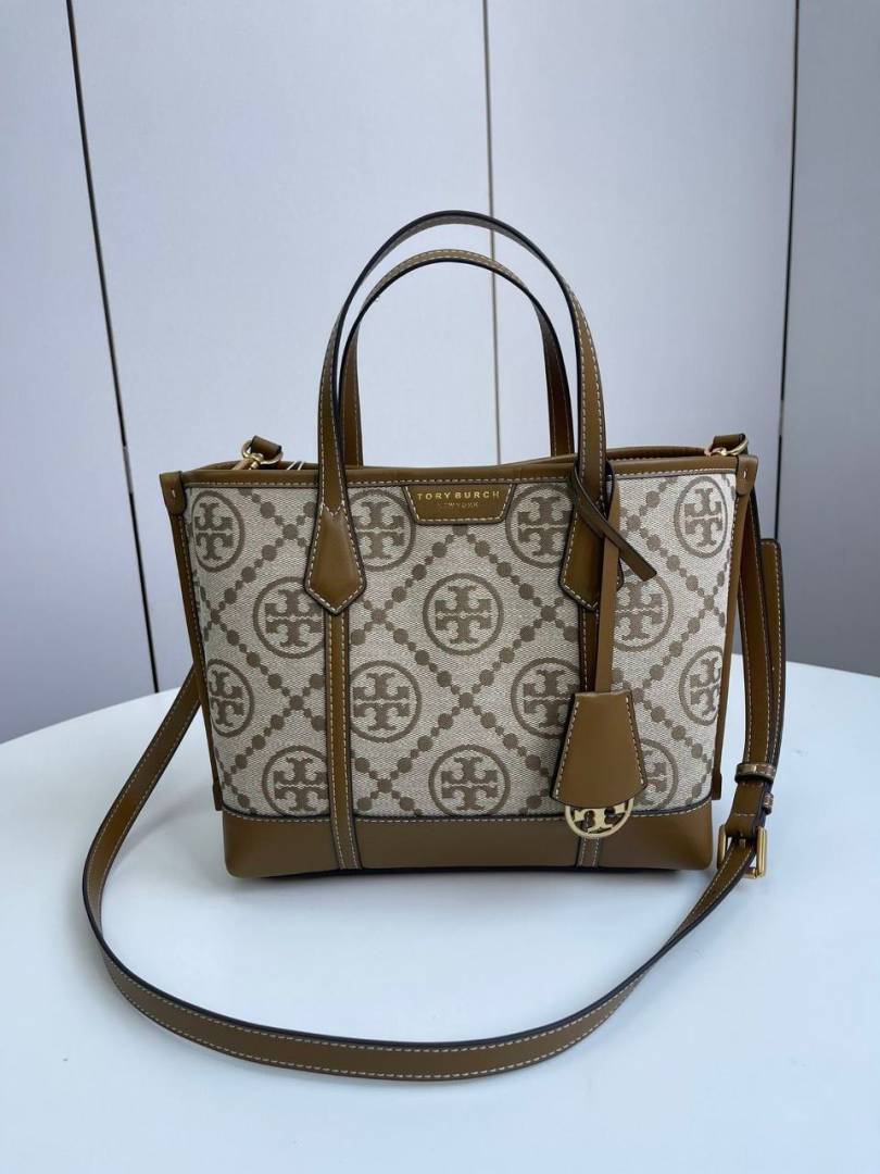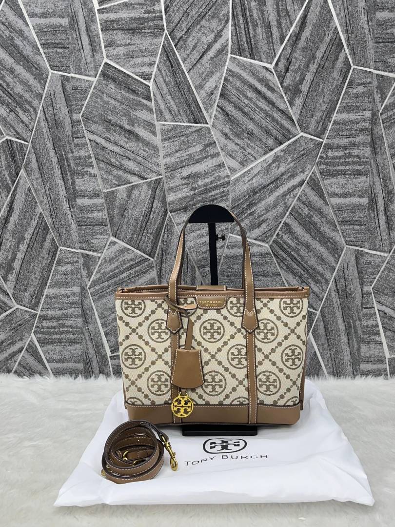 • Tory_Burch_Small_Tote_Jacquard_Signature_Brown_With_Dust_Bag_Brown