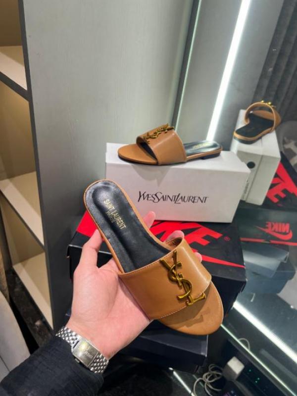 YSL Saint Laurent Premium Flats With OG Box & Dust Bag & Carry Bag (Brown - 1102)
